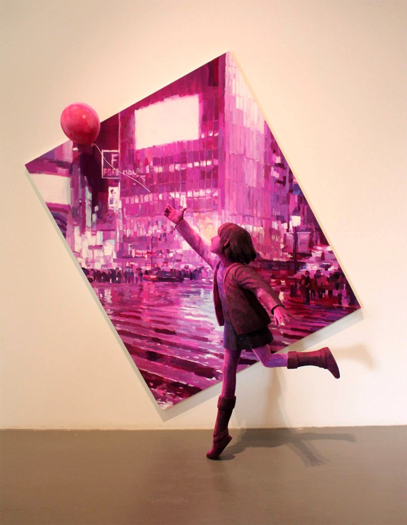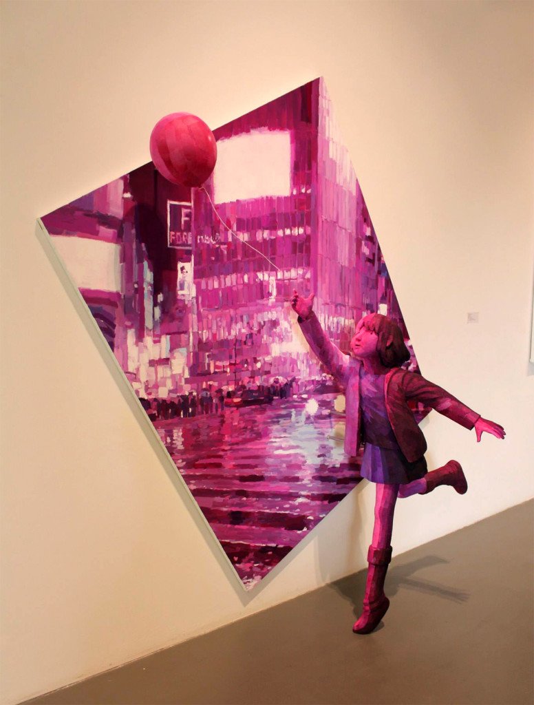 Sono una combinazione di dipinti e sculture le opere dell’artista giapponese Shintaro Ohata, un perfetto mix fra il 2d di un quadro e il 3D di una statua. Ed è proprio questo il segreto della sua arte. Le sue sculture di polistirolo sfaccettato sono come degli attori davanti a una quinta teatrale: l’artista le piazza davanti a dipinti a olio raffiguranti paesaggi naturali o urbani, negozi, strade, fermate metropolitane o interni di case e loro sembrano prendere vita e agire davanti a questi sfondi quasi monocromi.